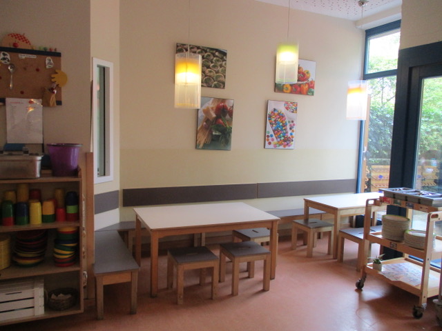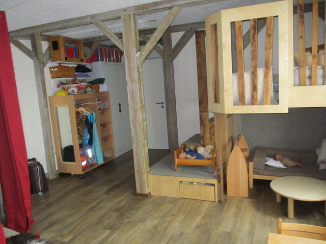 Im großen Atelier wird frei oder angeleitet gebastelt, gemalt, geknetet oder gematscht. Unser Bauraum ist für die Entfaltung der kreativen und gestalterischen Bauten bestens geeignet, genau wie der Rollenspielraum. Im Ruheraum, dem sogenannten Snoozelenraum, kommen die Kinder über Anregung der Sinne, Yoga und andere Entspannungsmöglichkeiten zur Ruhe.
